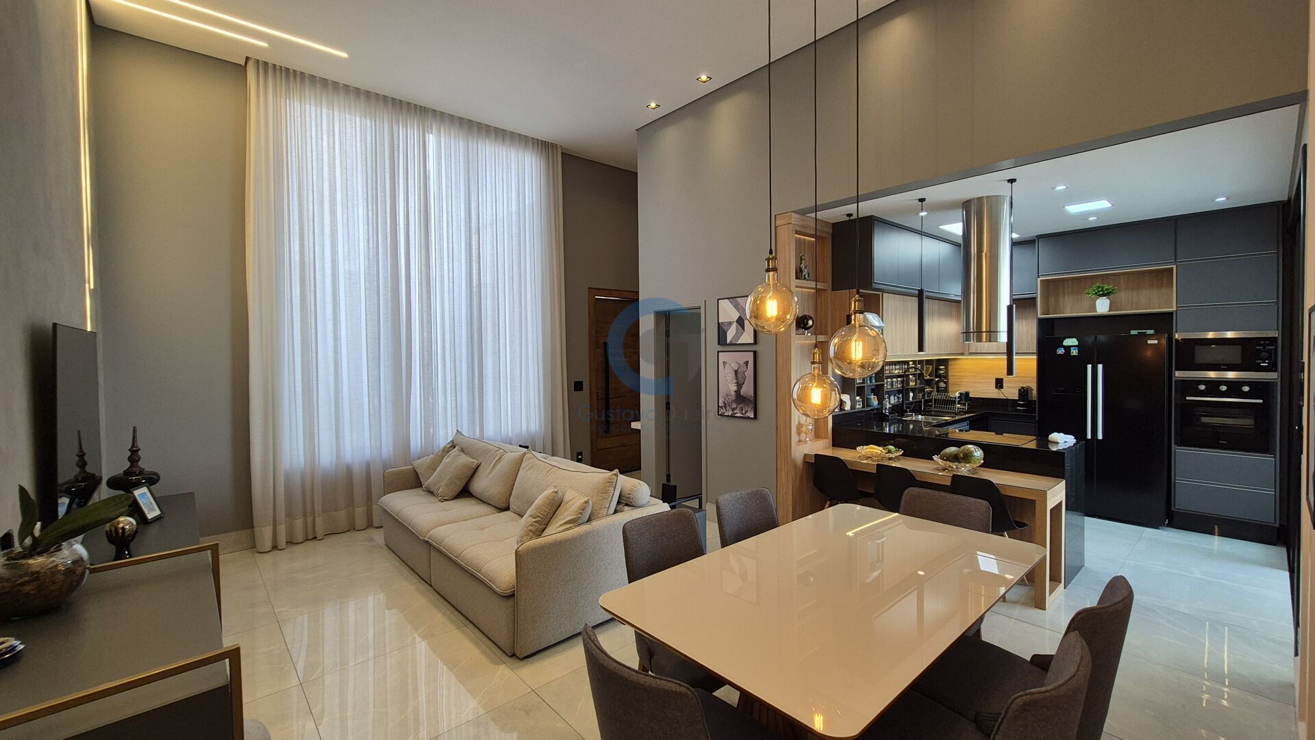 Casa térrea porteira fechada, com ambientes integrados, excelente padrão de acabamento e infraestrutura moderna de automação, energia limpa e segurança.